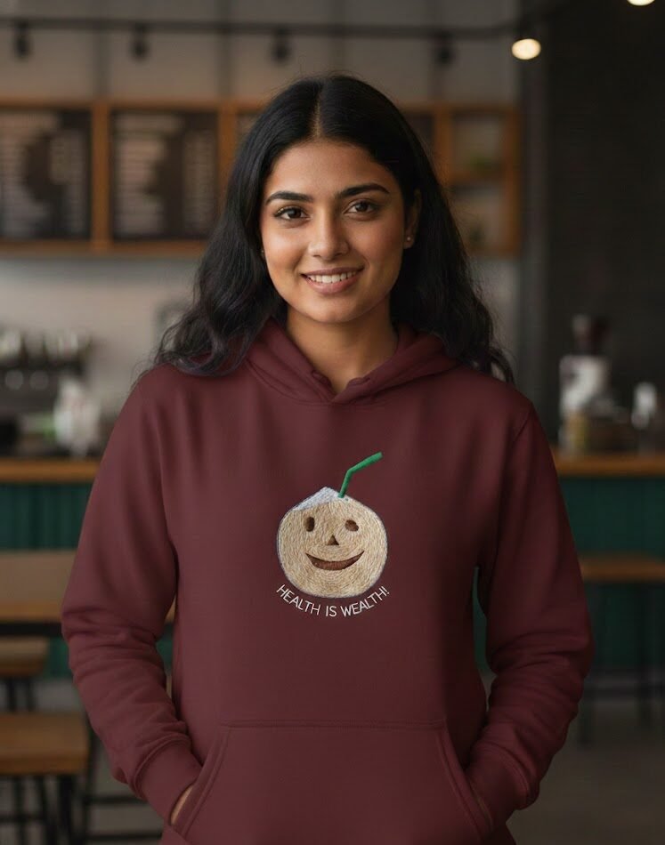 Add a fresh and meaningful touch to your wardrobe with the Coco Smiles – Hand Embroidered Hoodie. Crafted with love and detailed hand embroidery, this hoodie showcases a cheerful coconut design that symbolizes positivity, wellness, and a healthy lifestyle.