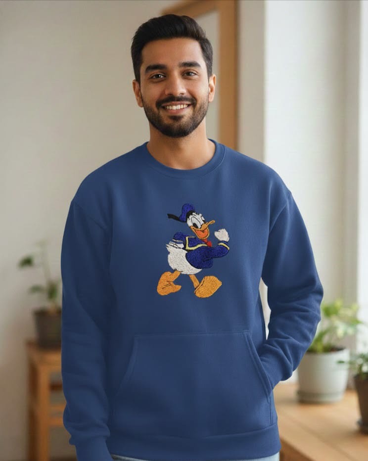 Upgrade your winter wardrobe with this Cute Cartoon Duck Embroidered Sweatshirt, designed to bring fun and comfort together. The playful hand-embroidered duck character on the front adds a cheerful and stylish touch, making this sweatshirt stand out effortlessly.