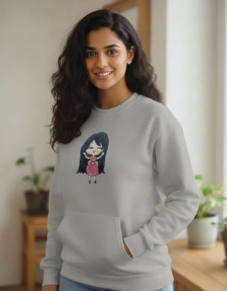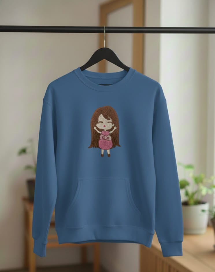 Stay warm and stylish with this Cute Doll Embroidered Sweatshirt, designed for those who love comfort with a touch of cuteness. Featuring a charming hand-embroidered doll motif, this sweatshirt brings a sweet, aesthetic vibe to your everyday wardrobe. Crafted from premium-quality fabric, it offers a soft feel and long-lasting comfort.