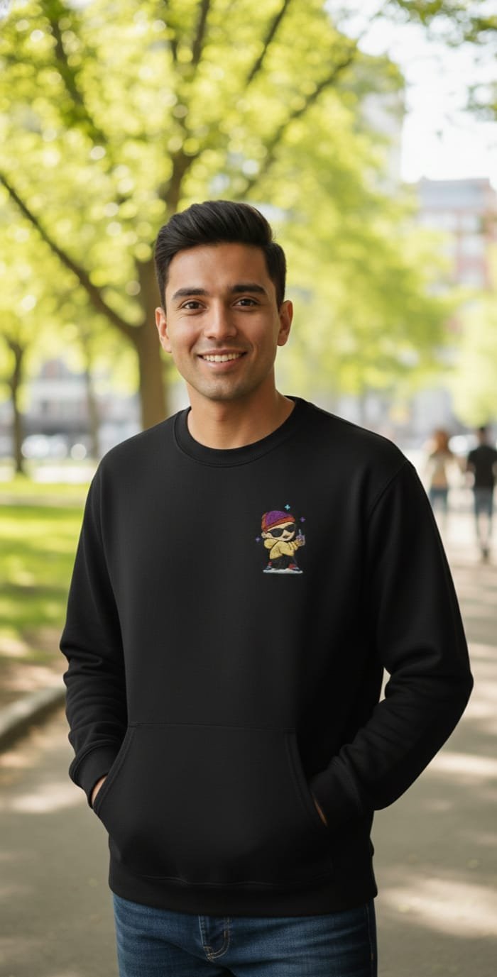 Crafted with care, this sweatshirt showcases a hand-embroidered boy character, making every piece unique. Unlike printed designs, the fine embroidery adds texture, depth, and a premium handmade feel.