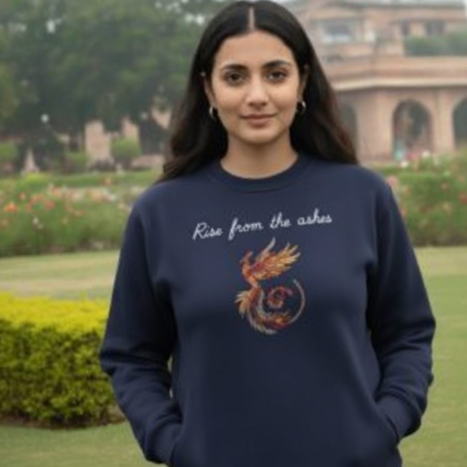 Made from premium-quality soft fabric, this sweatshirt offers exceptional comfort and warmth for all-day wear. The elegant colour paired with the artistic phoenix design and motivational quote makes it a perfect blend of style, emotion, and inspiration. The relaxed fit, ribbed cuffs, and durable stitching ensure long-lasting comfort and a perfect shape.