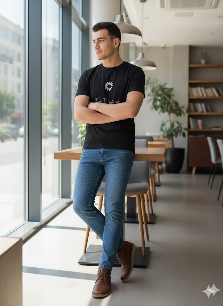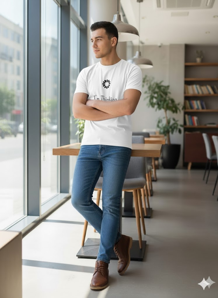Made from premium 100% cotton, it keeps you cool during long coding sessions or lazy weekends. The minimalist “loading” symbol and “I’m Thinking…” embroidery make it a perfect mix of humour and simplicity — a true reflection of a programmer’s everyday life.