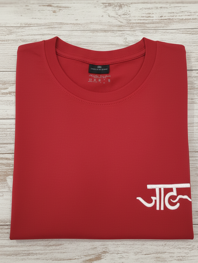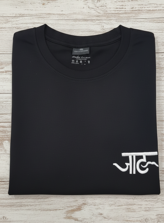 Yeh T-shirt high-quality, soft cotton fabric se bani hai, jo aapko din bhar ultimate comfort deta hai. Chest par ‘जाट’ word ki expert-level embroidery ki gayi hai. Printing ke bajaye embroidery use karne ka matlab hai ki aapka design kabhi fade nahi hoga aur hamesha sharp aur classy dikhega.