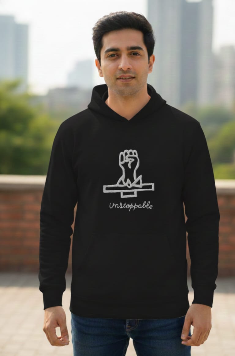 Make a strong style statement with this Unstoppable Fist Minimal Graphic Hoodie. Designed for comfort and confidence, this hoodie showcases a clean line-art fist rising above a platform, symbolizing strength, resilience, and determination. The word “Unstoppable” beneath the artwork adds a motivational touch, making it ideal for gym-goers, fitness lovers, or anyone who believes in pushing limits.